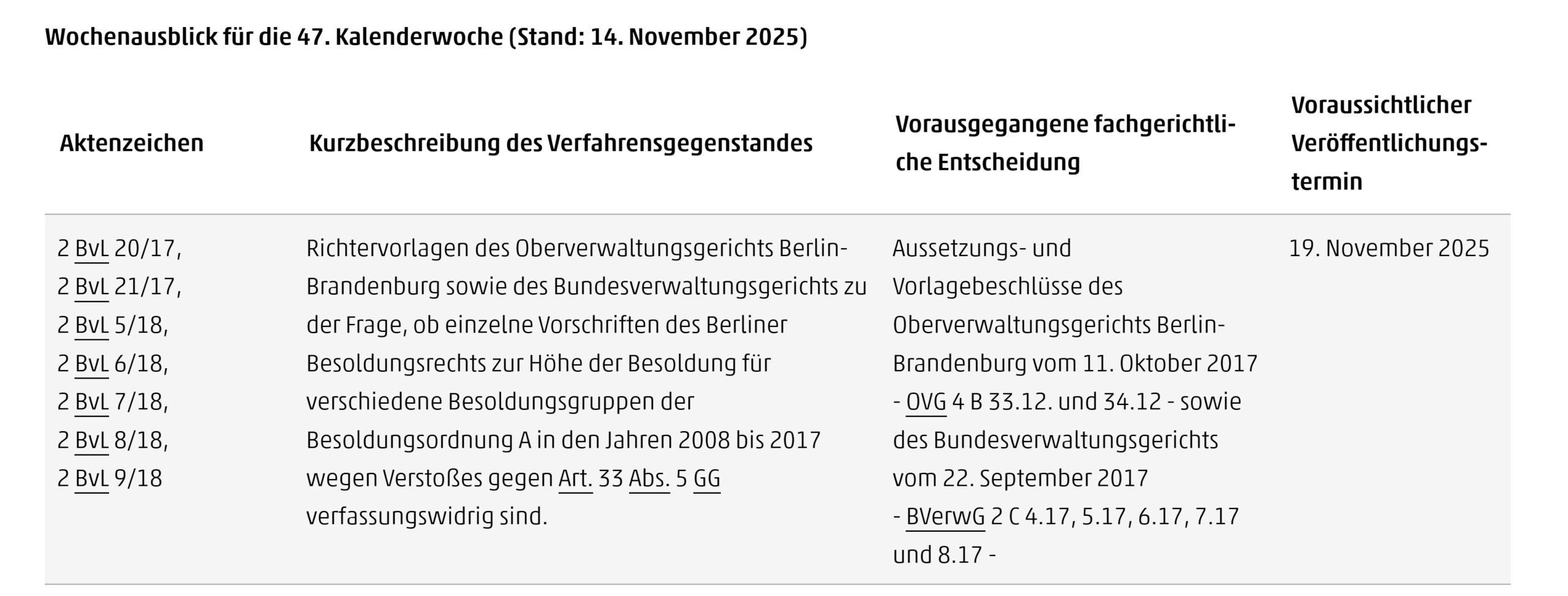 Und die bisherigen Pressemeldungen und verschiedene Äußerungen von Politikern, den Aussagen vom Personal- und Haushaltsausschuss von NRW (Videostream) und die hektische Betriebsamkeit beim Bundesinnenminister in Hinsicht auf die Bundesbeamten spricht Bände und für sich. Da wird ein angenehmes Urteil für die Beamten und ein eher unangenehmes für die Politik sein.